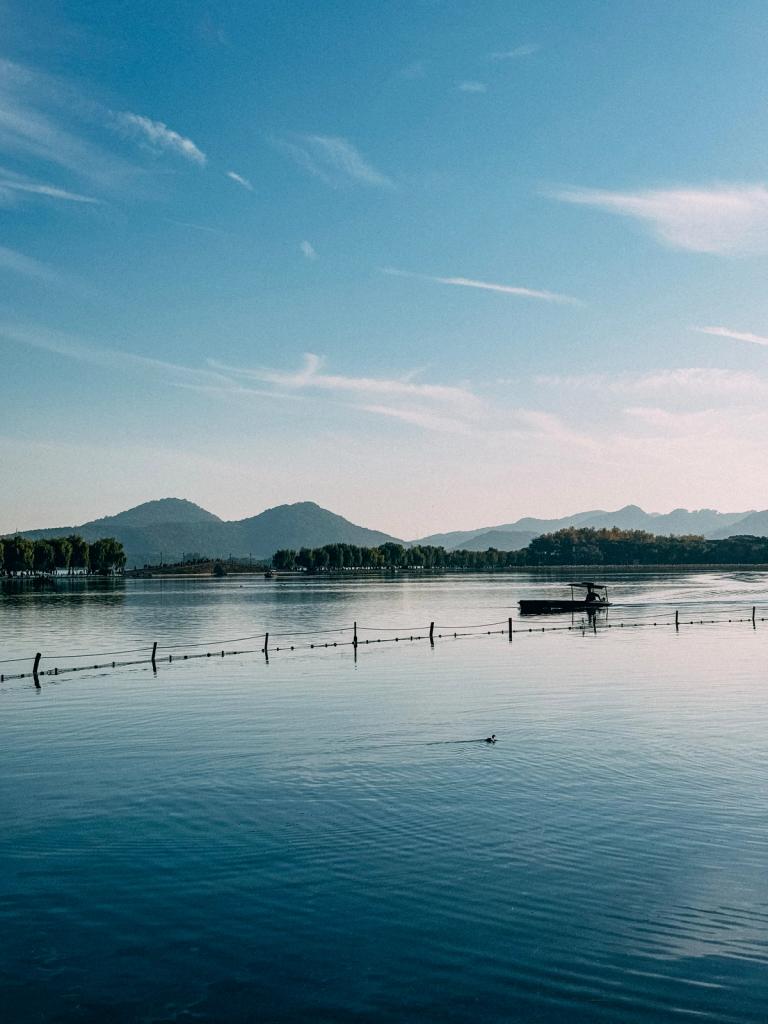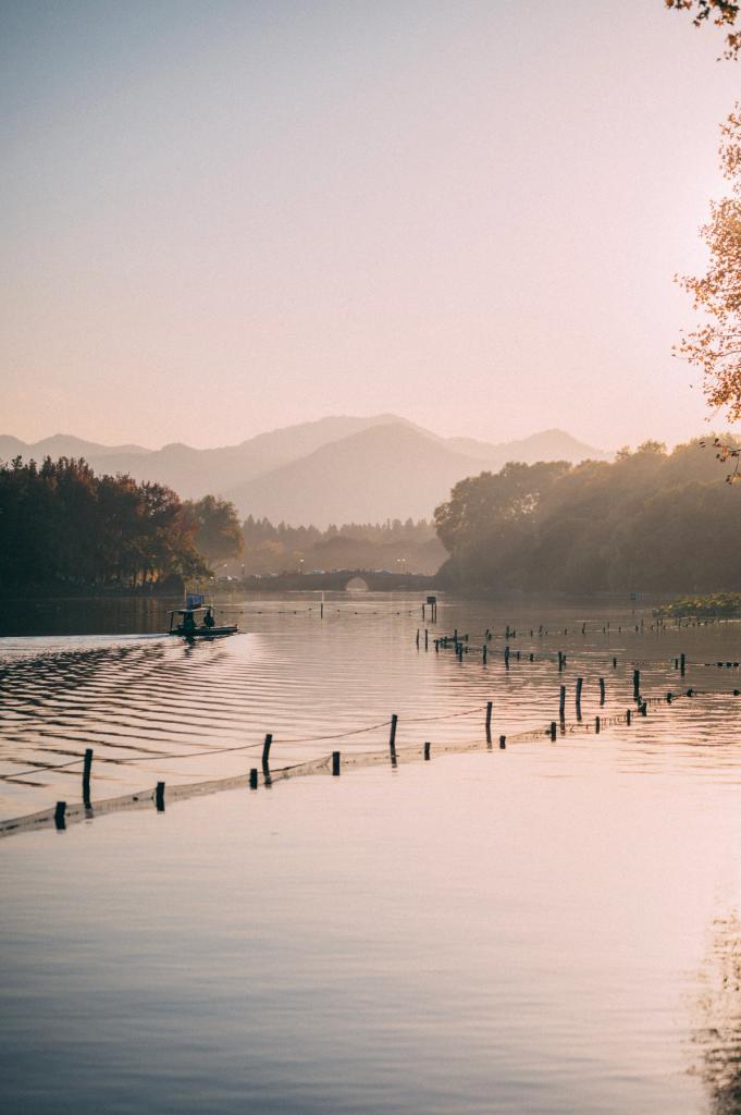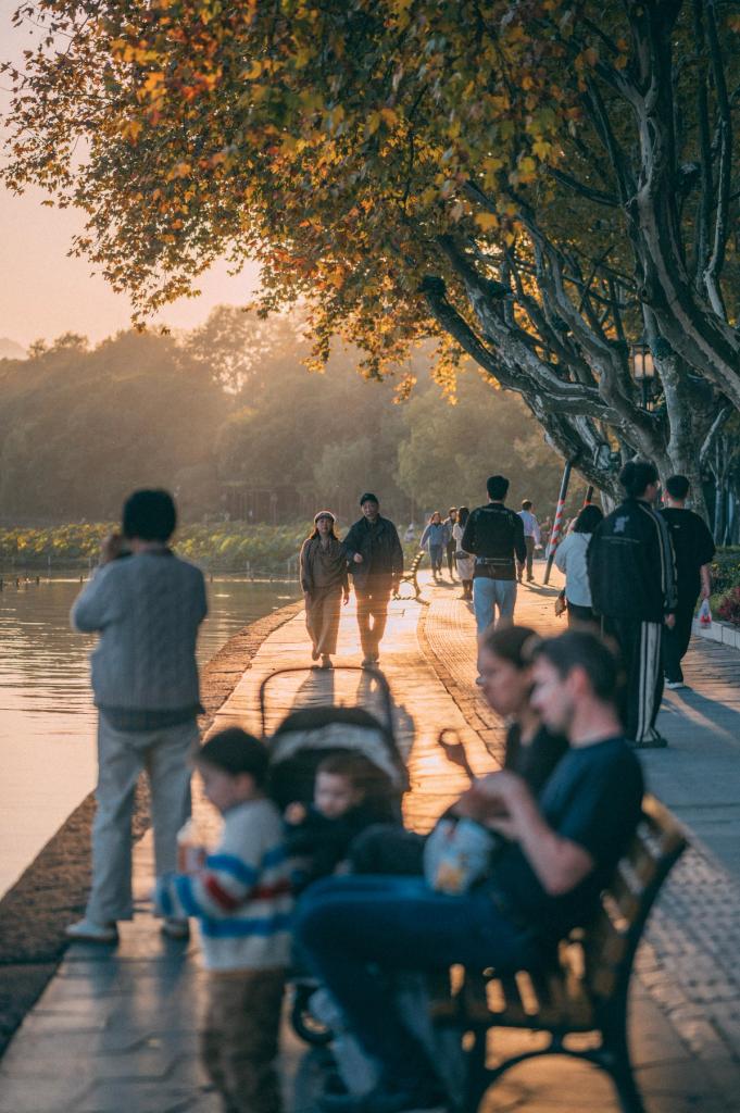 This collection of photos was taken by the West Lake in the autumn of 2023. It was a pleasant afternoon, where you could see occasional boats and various birds on the lake. Despite it being a weekday, the shores were still bustling with tourists. My friends and I walked along Beishan Street on the north bank of the lake, watching as the sun slowly set.